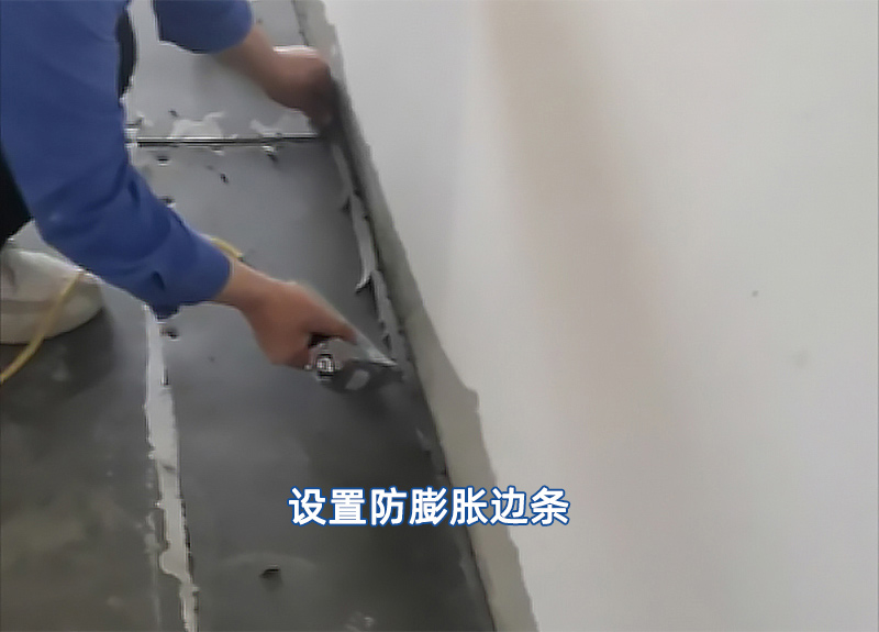 根據(jù)石膏自流平實(shí)際施工情況,必要時(shí)候,四周墻面也需要設(shè)置防膨脹邊條。防膨脹邊條的應(yīng)用應(yīng)符合下列規(guī)定: