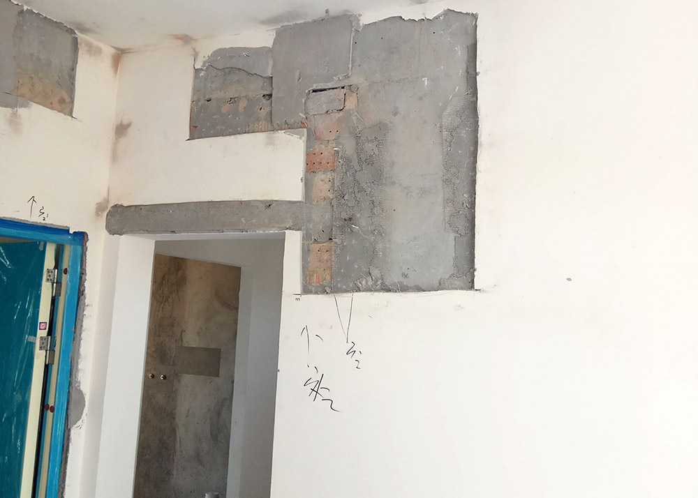 一般是由于交界處變形大引起抹灰層空鼓。對于灰渣板墻體、加氣混凝土墻體、改性石膏板墻體,需在墻體變形穩(wěn)定后,再進行抹灰施工,否則將導致與其他墻體間出現(xiàn)結構裂縫。