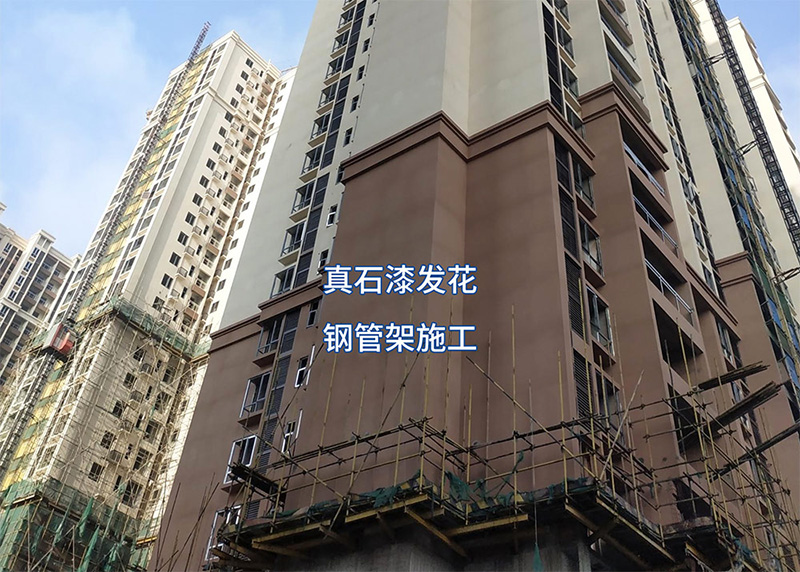 大家都知道,不同溫度下施工,真石漆成膜快慢不一樣,容易引起墻體顏色差異。其中原因有一點(diǎn)可能會被忽略,就是采用鋼管架施工。現(xiàn)在氣溫逐漸升高,陽光天氣增多,采用鋼管架施工,遮擋部分會造成真石漆干燥過慢,墻面形成明顯對比。建議采用吊籃從上往下施工,同一面墻盡量保持同一時段施工,避免發(fā)生色差。