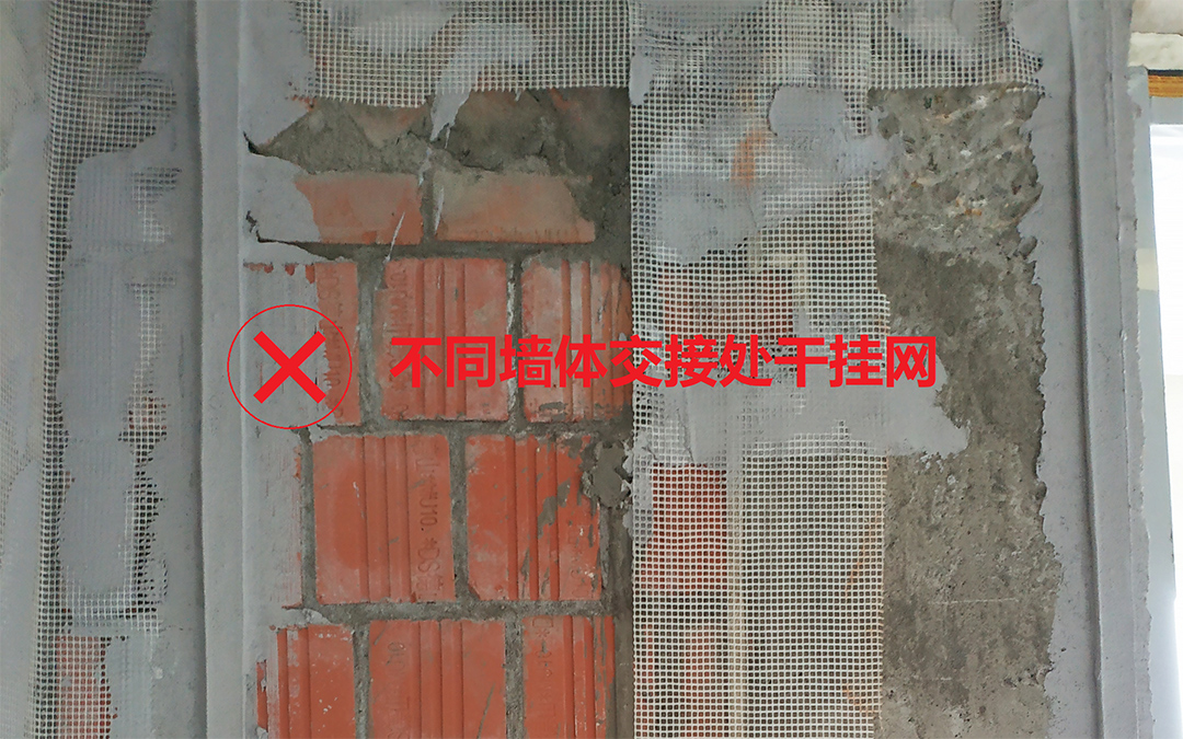 3、不同墻體交接處、或新舊墻體連接處等,掛網(wǎng)施工是為了防止因各墻體不均勻形變產(chǎn)生裂縫影響抹灰層。