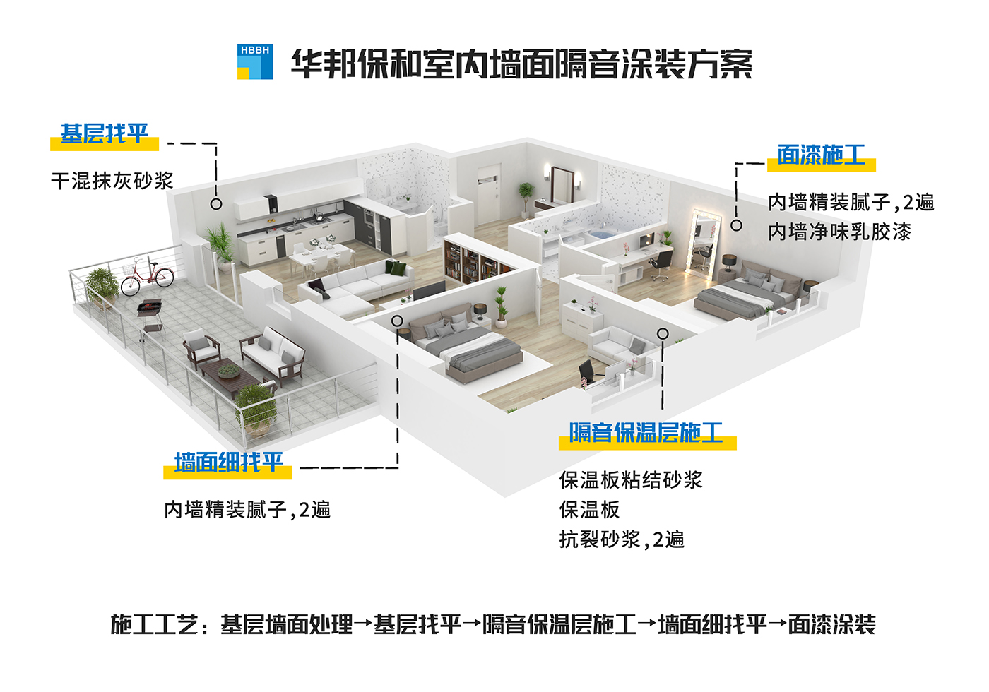 以室內(nèi)乳膠漆涂裝為例,簡述一下室內(nèi)墻面隔音保溫施工的工藝